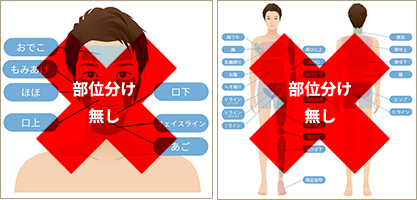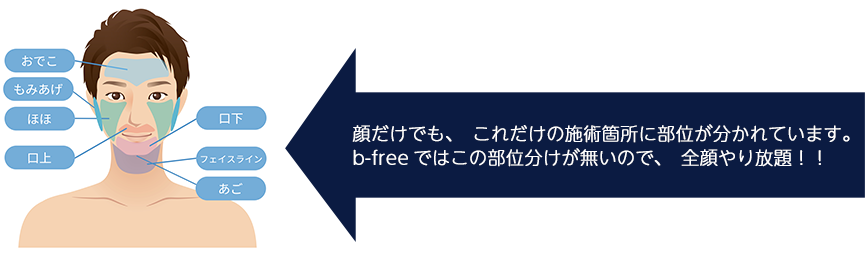 b-freeでは「施術部位」の概念を取り払うことで、やり放題を実現!!部位が分かれていないので、追加料金は一切ありません!